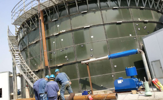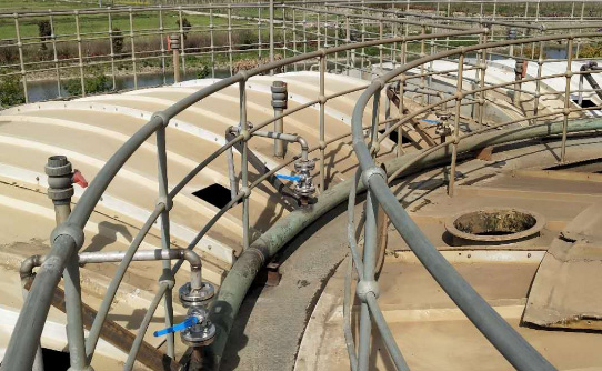 好氧罐尺寸:φ19.5*H7m,有效水深5m,有頂蓋。