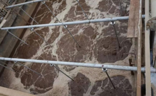 該項(xiàng)目改造后運(yùn)行正常穩(wěn)定,解決了硝化池好氧曝氣堵塞氧利用率下降的問(wèn)題,出口溶氧均在2.0以上。鼓風(fēng)機(jī)出口壓力基本較之前降低了約15kPa,旋流曝氣水花,可將水面的泡沫推開,長(zhǎng)久運(yùn)行一直如此的話,可以將消除泡沫的泵部分停用;大幅度降低運(yùn)保日常清理更換管式曝氣器工作量和費(fèi)用。原先維護(hù)一組設(shè)備至少6人,現(xiàn)在幾乎不需要再安排人手,平時(shí)巡視即可。