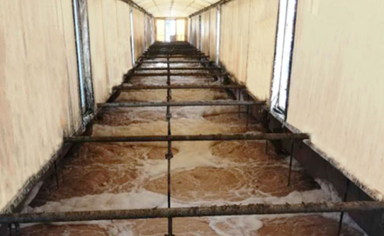 連續(xù)式曝氣,A/O+接觸氧化池,改造A/O的好氧池,池子加罩密封,改造前使用穿孔曝氣管和盤式曝氣器