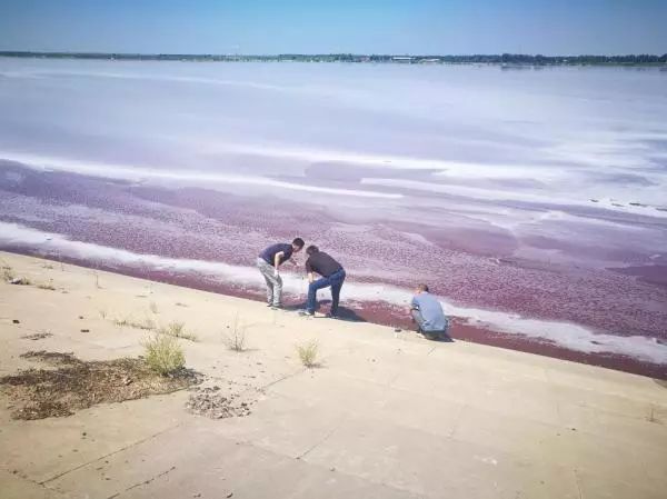 巨大的黑臭水體上大面積漂浮著白色泡沫和紅色的固體廢物,污水顏色呈暗紅色,散發著刺鼻的臭味。督查組監測人員立馬對該黑臭水體進行水樣監測。