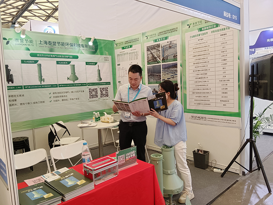 上海泰譽展臺展出TL450系列、TL900系列、TL1000系列等旋流曝氣器。